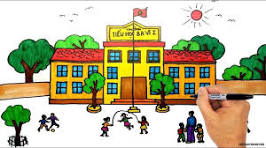 Giáo viên: Trình bày các bước vẽ một bức tranh về trường học trên bảng phụ: